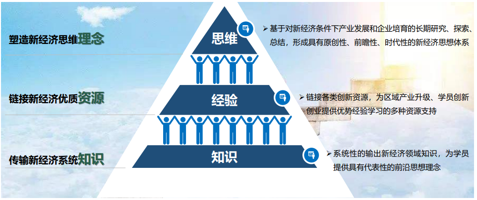 传播新经济系统知识:系统性的输出新经济领域知识,为学员提供具有代表性的前沿的新经济课程。